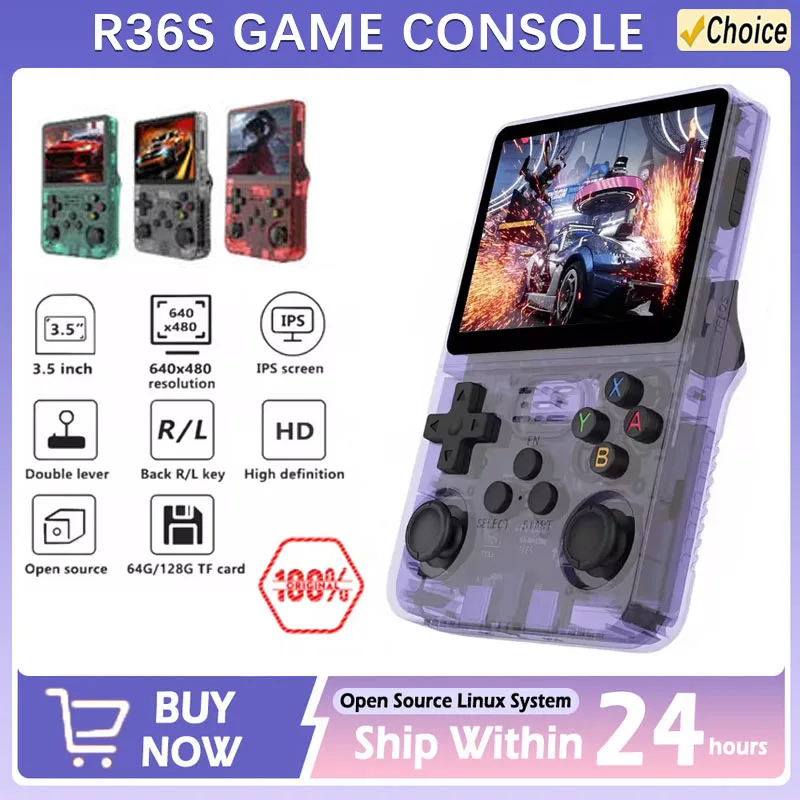 NEW R36S Retro Handheld Video Game Console Linux System 3.5-inch IPS Screen Mini Portable Handheld Video Player 64GB
