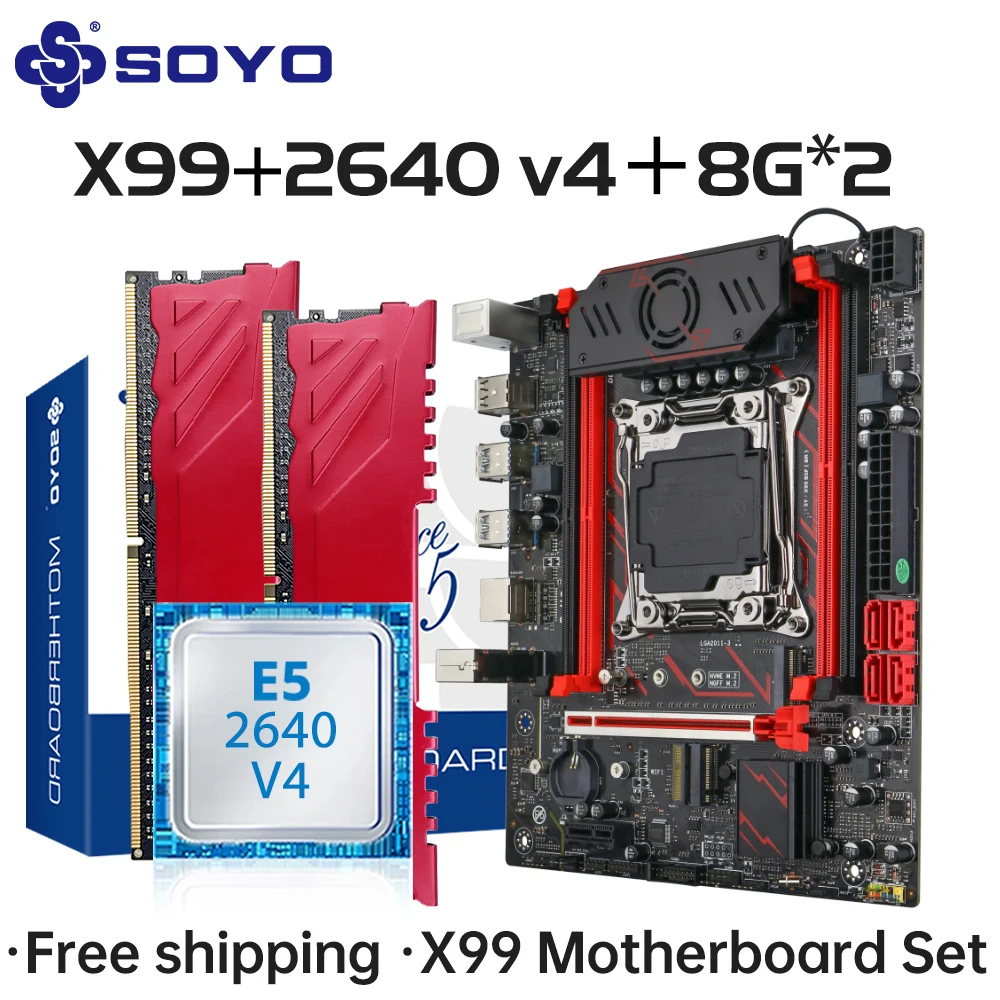 Gaming Motherboard Set X99 C612 with Intel Xeon E5 2640 V4 CPU DDR4 16G[8G*2] 2133MHz RAM Computer components Desktop SOYO