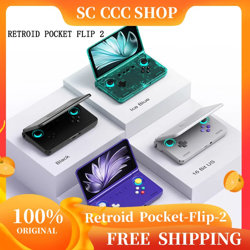 2025 New Hot Selling AMPOWN Retroid Pocket Flip 2 Android 13 Touch Screen 5.5-inch Retro Open Source Game Console SD865 Wifi 6