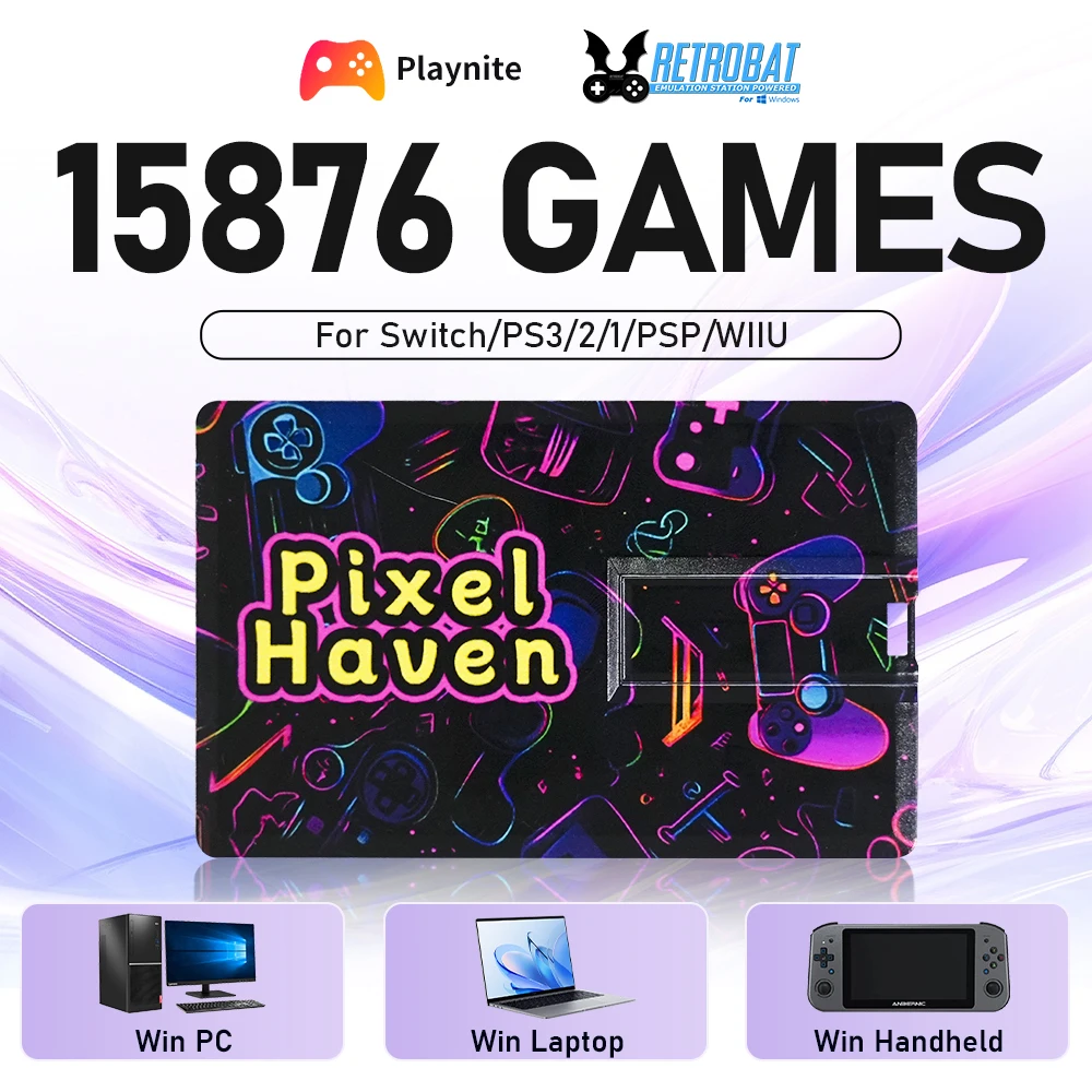 Pixel Haven Game Card Playnite&Retrobat OS with 15876 Games for Win PC/laptop/Handheld Game Console for Switch/PS3/2/1/PSP/WIIU