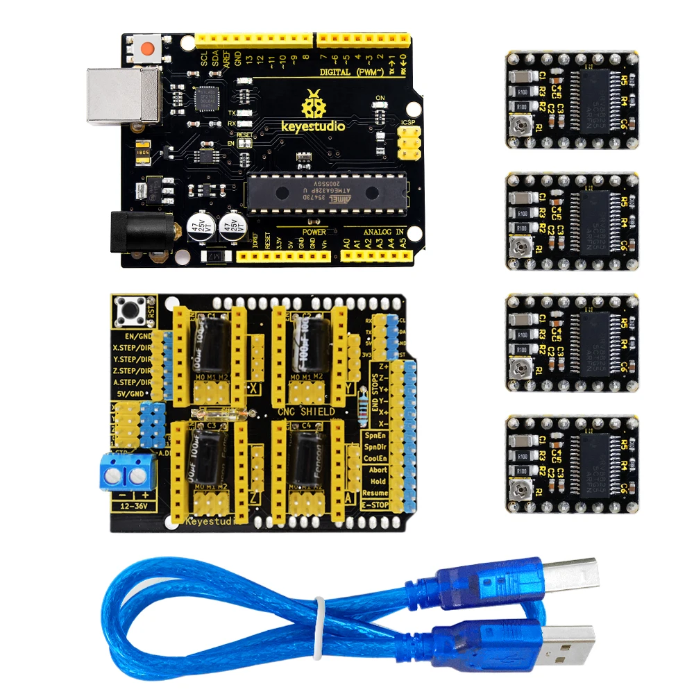 Keyestudio CNC Kit For Arduino CNC Shield V3.0+UNO R3+4pcs DRV8825 Driver +1pc USB Cable Compatible GRBL 0.8c Kit