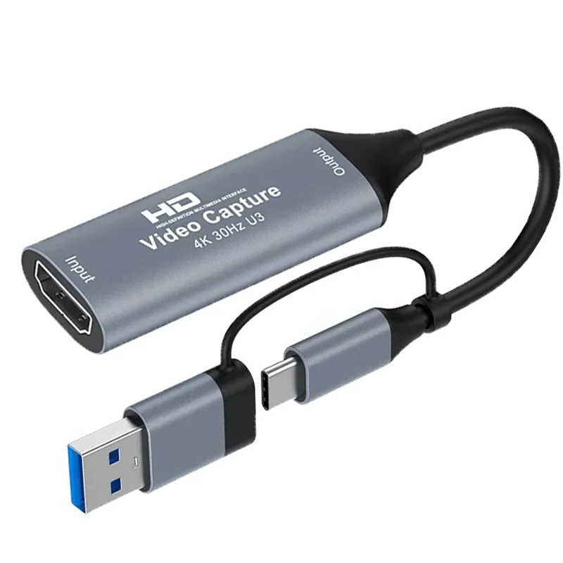 4K HDMI-compatible to USB-A USB-C Video Capture Card 1080P 30Hz 60Hz No Lag for PS5 Switch OBS PC LiveStreaming DSLR Recorder​