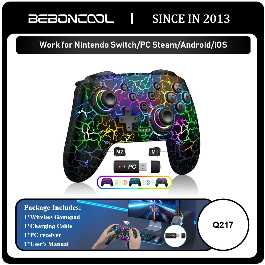 9 Light Wireless Controller For Switch/OLED/Lite/Android/IOS/ PC with Programmable Keys Switch Gamepad
