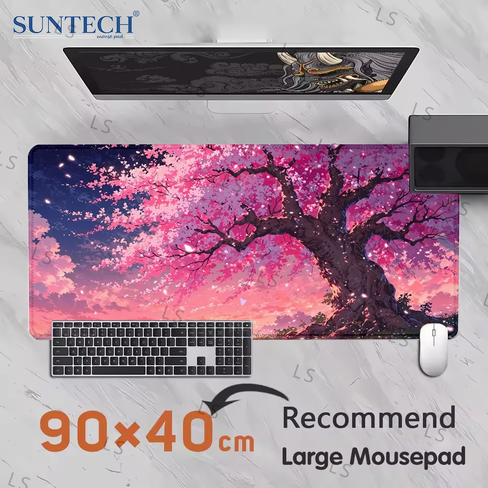 Japanese cherry blossoms Women's Mouse pad large Black 400X900 PC Computer Keyboard XXL Desk mat Office interior accessories rug