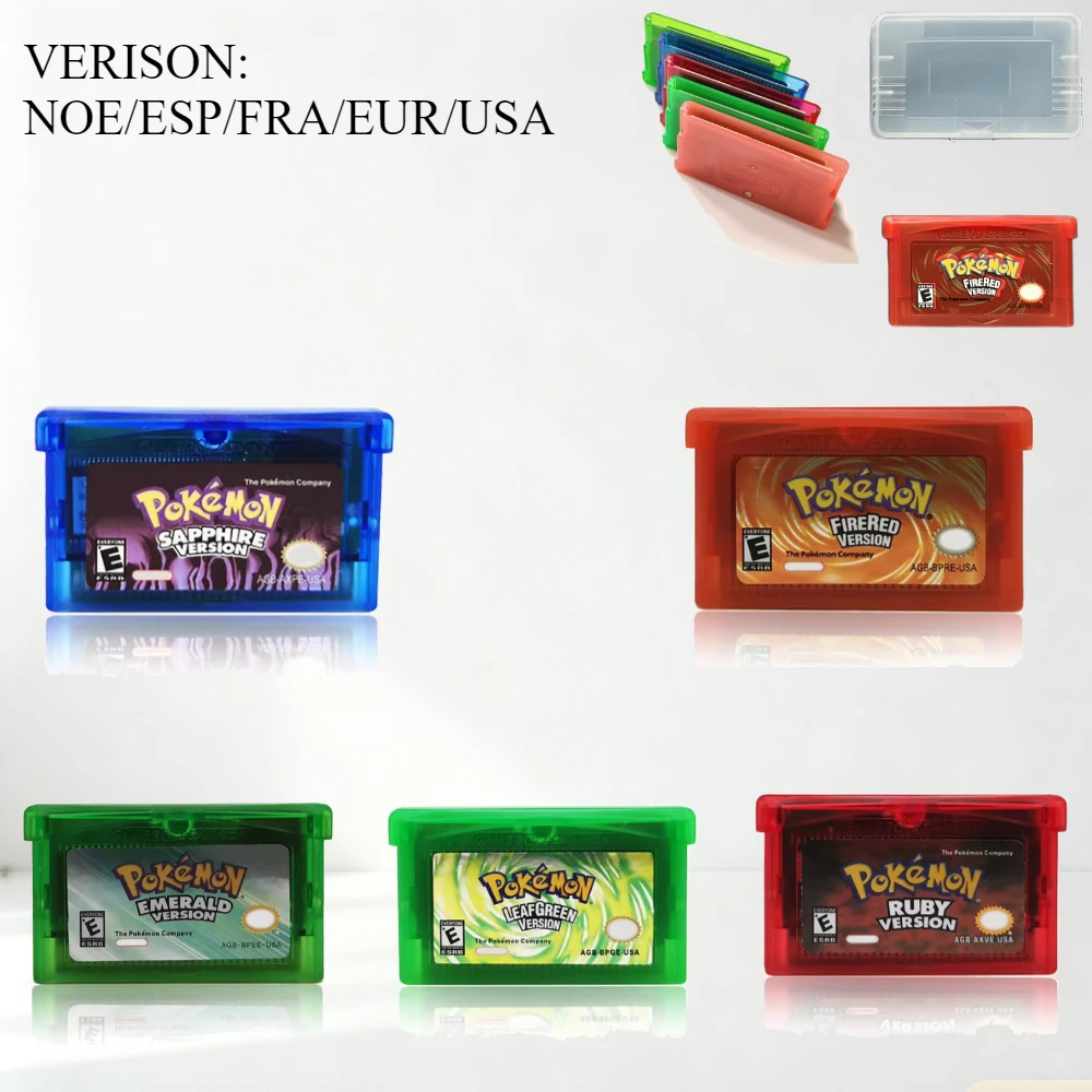 NEW 32 Bit Video Game Cartridge Pokemon Series Emerald FireRed Leafgreen Ruby Sapphire 5 Versions Game in Box for GBA No Manual