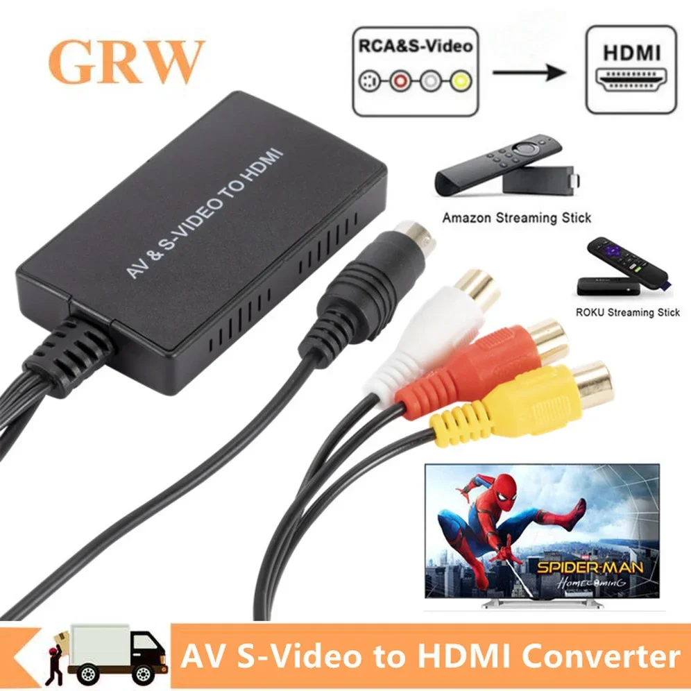 AV S-VIDEO Video to HDMI-compatible Converter For HDTV DVD STB, Compatible with PS2/ PS3 1080P AV RCA CVBS SVideo Adapter