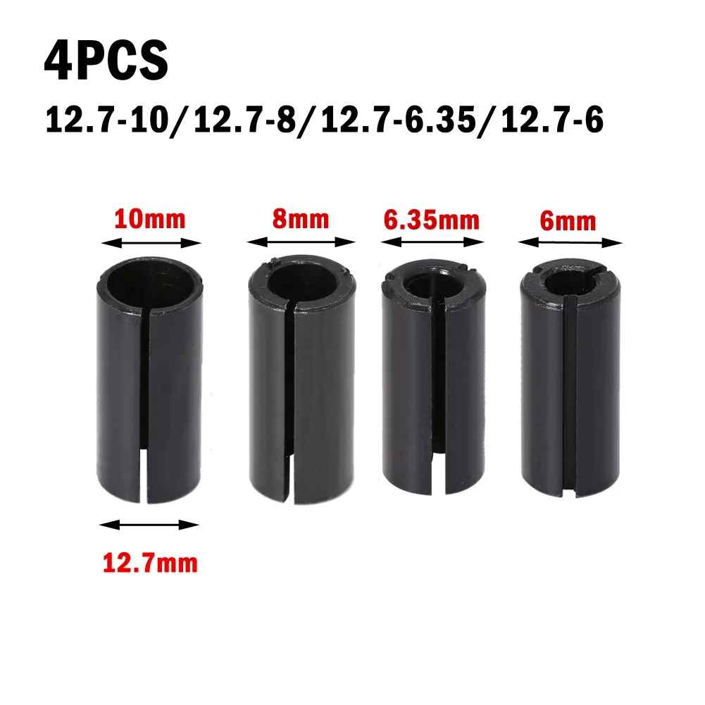 4pcs Router Bit Adapter Collet Milling Cutter Conversion Chuck Reducing Sleeve Carbon Steel Adapter 12.7mm To 6/6.35/8/10