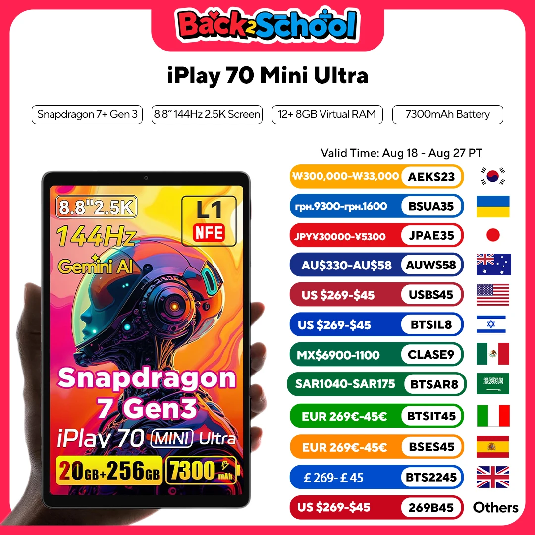 ALLDOCUBE iPlay 70 Mini Ultra 2.5K 144Hz Gaming Tablet 8.8 inch Snapdragon 7+Gen3 DTS Sound 7300mAh 12+8GB 256GB Android 14 Pads  Read more