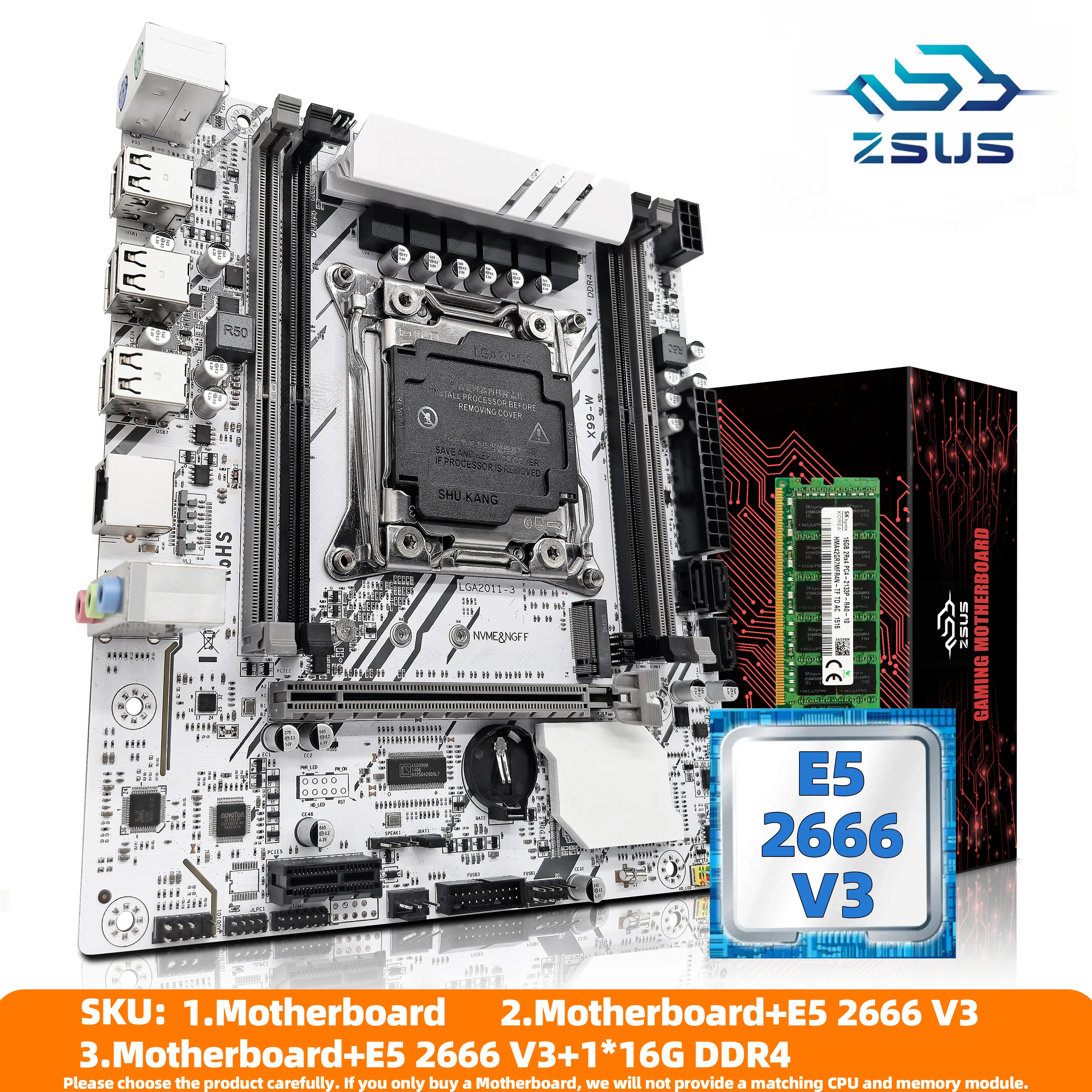 ZSUS X99-W Motherboard Set Kit With LGA2011-3 Xeon E5 2666 v3 CPU DDR4 16GB (1*16GB) 2133MHZ RAM Memory NVME M.2 SATA  Read more