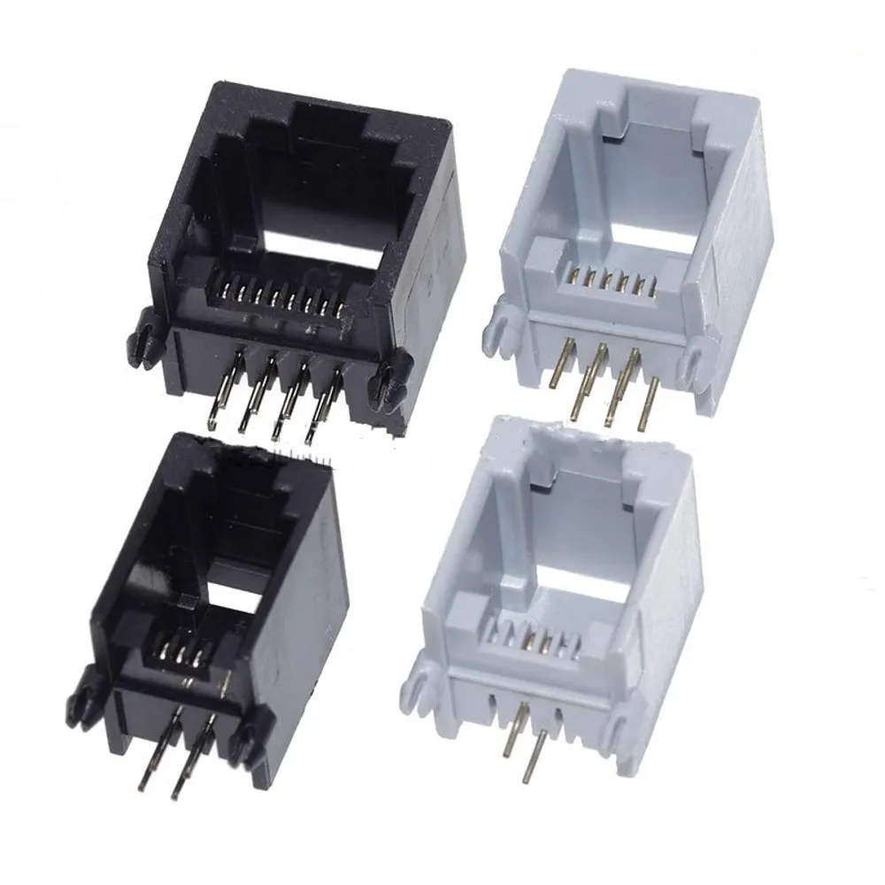 100 pcs RJ11 4P4C 6P6 6P4C 6P2C 8P8C Modular Network PCB Jack Vertical Ports Sockets Female Connectors black gray  Read more