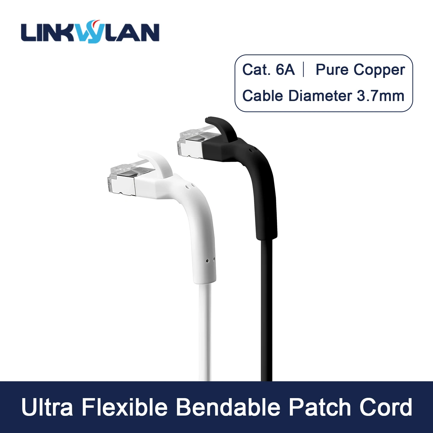 Linkwylan Slim Bendable Cat.6A Cat7 F/UTP Copper Network RJ45 Patch Cable 32AWG TPE White Black