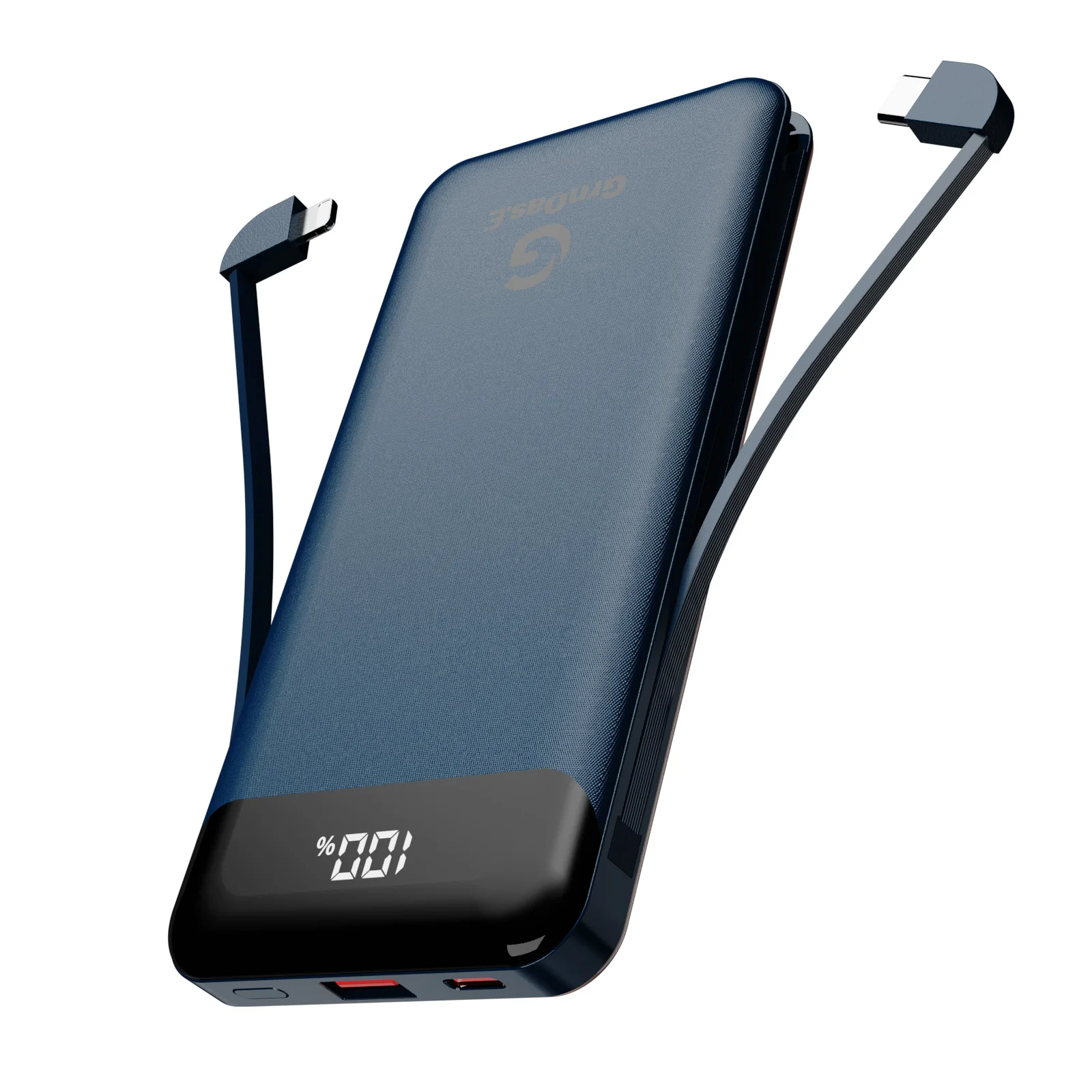 10000mAh 22.5W Fast Charging Power Bank with Cords Wires iPhone Charger for Apple iPhone 16 15 - Blue