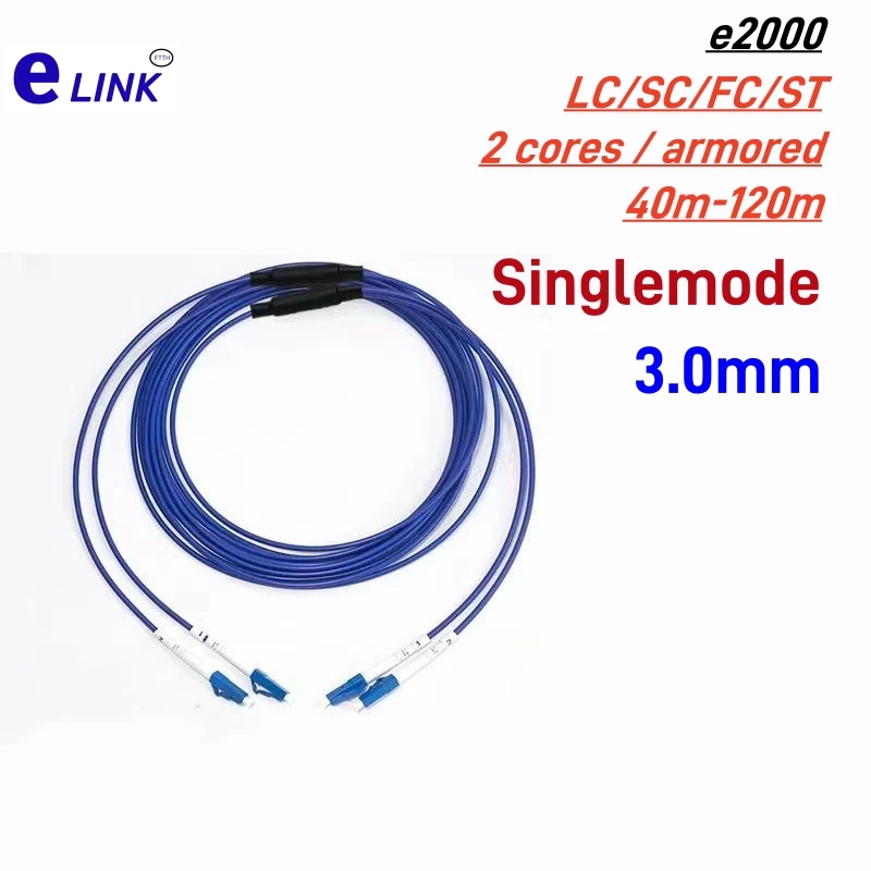 Armored optical Patch Cord 2 cores singlemode 40M50M60M70M80M100m120m 2C SC LC FC SCAPC E2000 SM cable ftth jumper 2 fibers blue