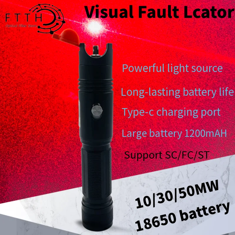 2025 NEW Fiber Optical Red Light Pen Rechargeable10mw 30mw 50mw Visual Fault Locator VFL Fiber Optic Cable Tester type-c