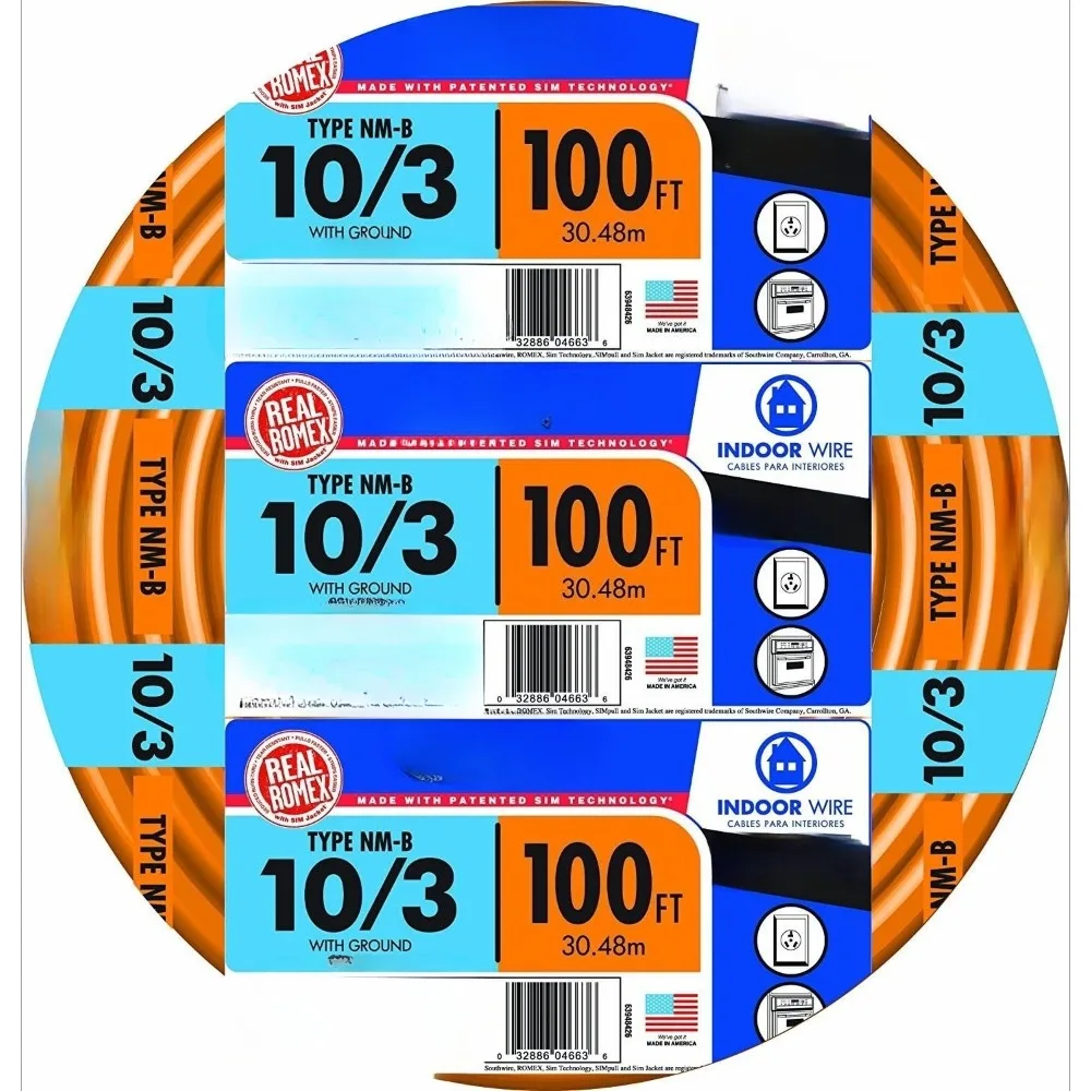 Romex Brand Simpull Solid Indoor 10/3 W/G NMB Cable 100ft Coil, Orange SW# 28828228  Read more