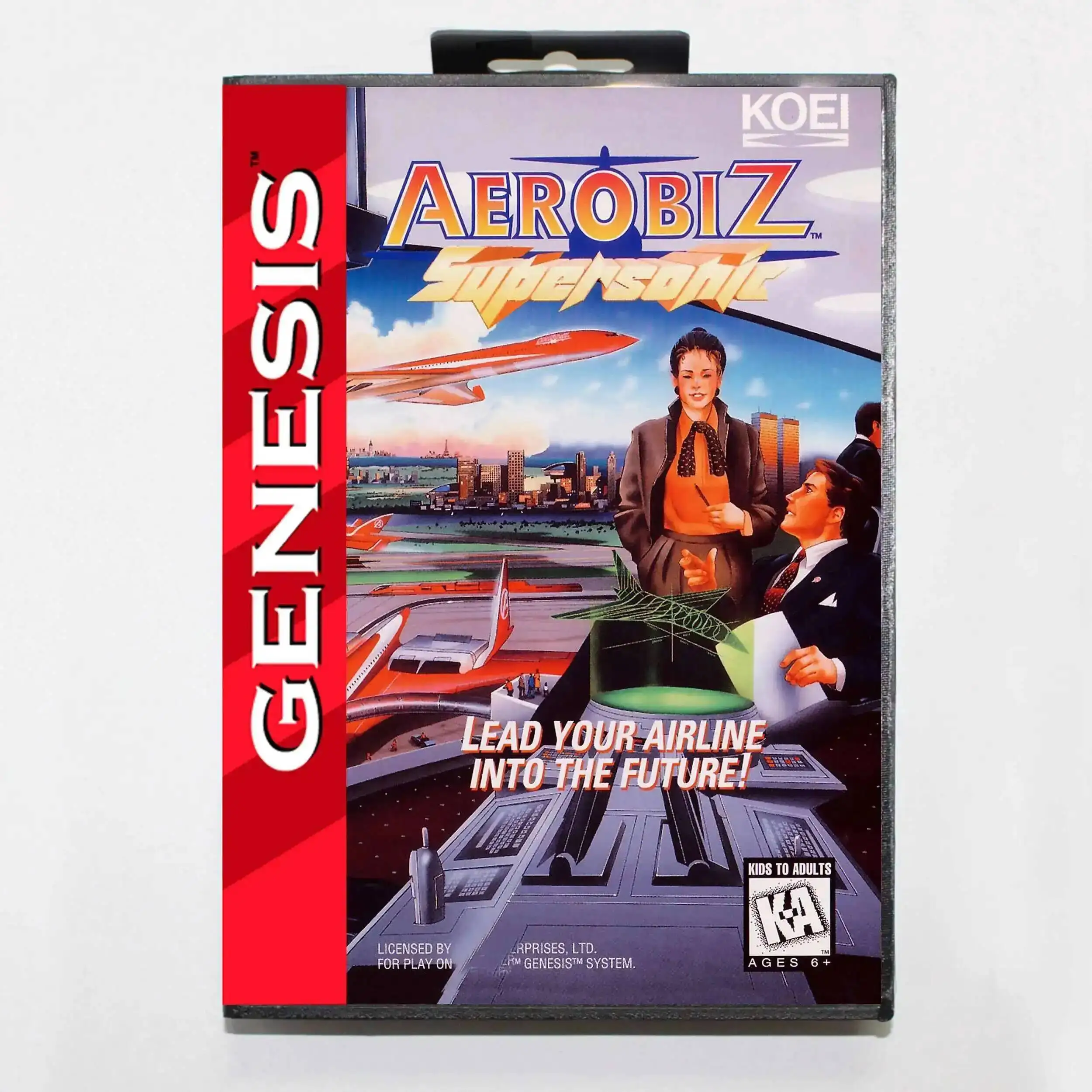 Aerobiz Supersonic NTSC-U MD Game Card with Box for 16 Bit Sega Megadrive Genesis System