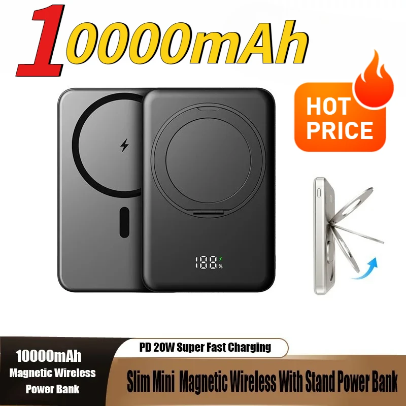 10000mAh Slim Mini Magnetic Wireless Power Bank PD20W Fast Charger Stand Portable External Battery for IPhone Samsung