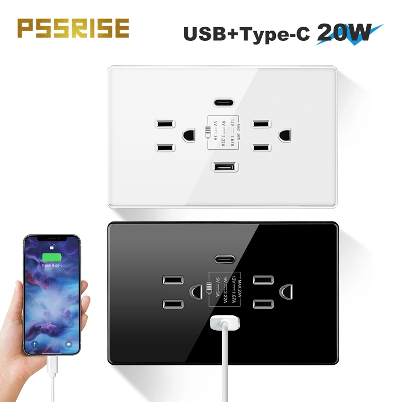 PSSRISE Taimei standard wall socket, smart home 20W USB Type-C 5V 2.1A charging plug board, home appliance plug adapter
