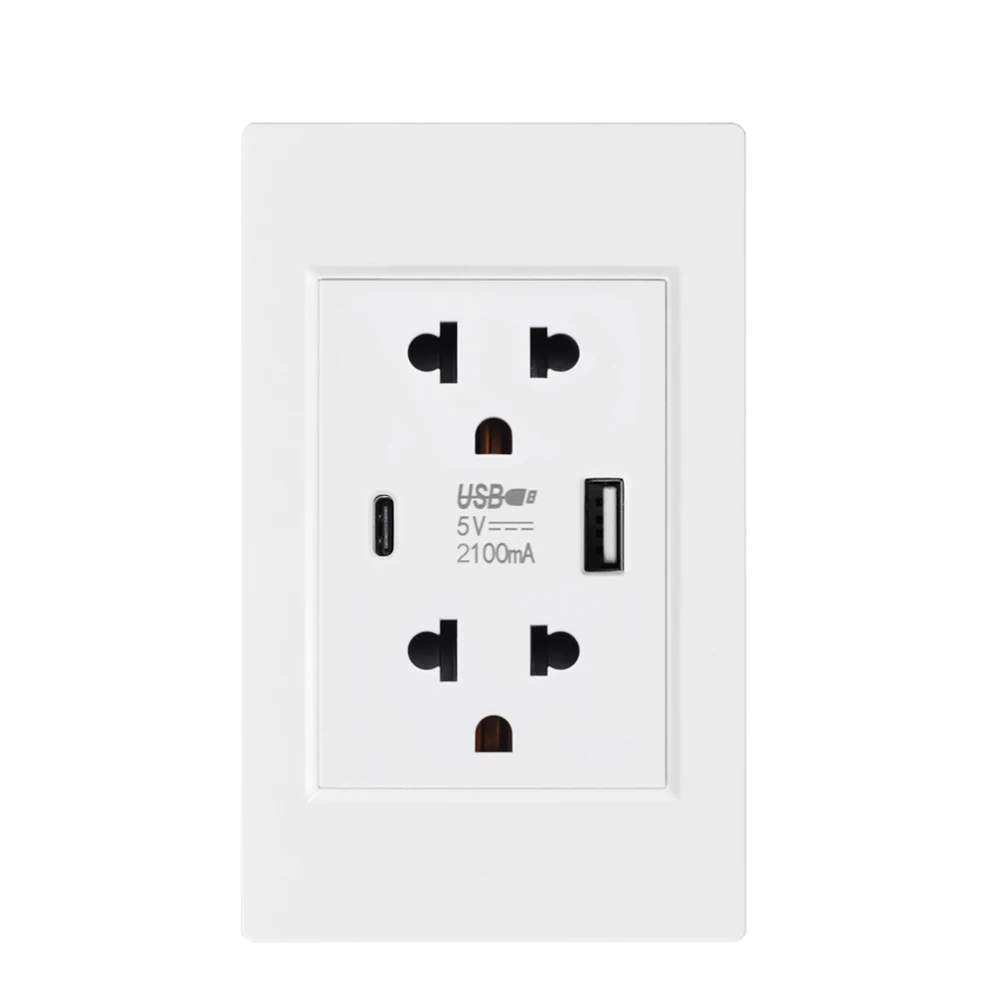 VISWE Wall Usb Plug Socket Thailand Standard, Household 3 Holes Power Outlet Type-c USB 118*72mm Flame Retardant Plastic Panel