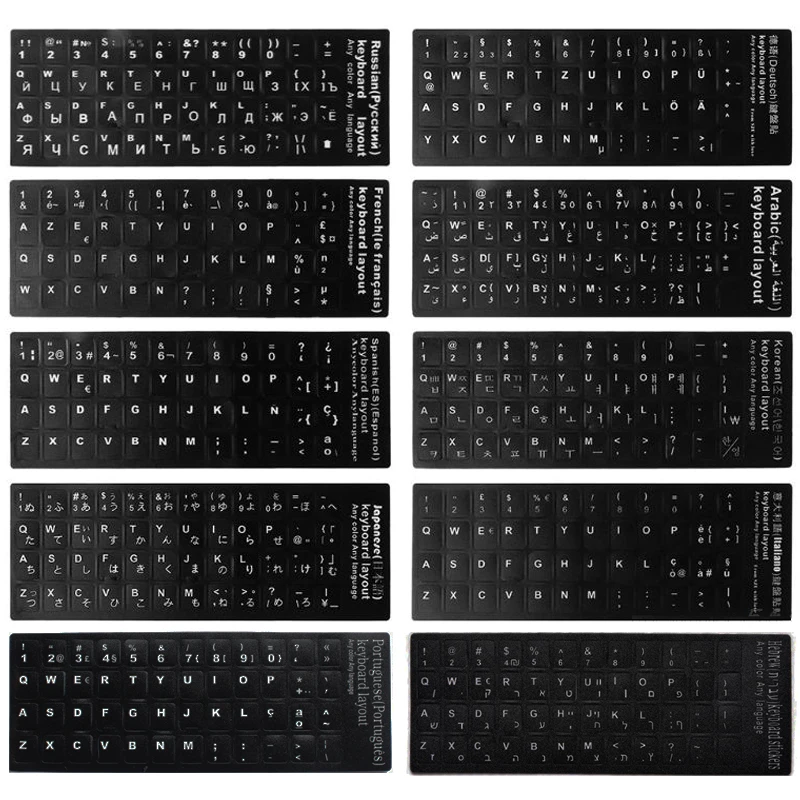 Matte Anti-Glare Russian/French/Spanish/Japanese/German/Arabic/Korean/Italian/Turkey/Thailand Keyboard Stickers Black Background