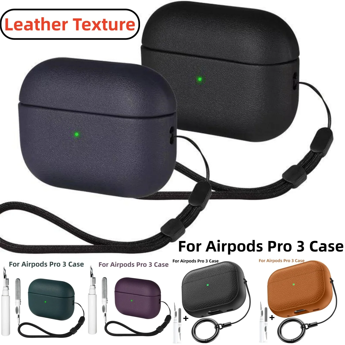 Shockproof Protective Cover for AirPods Pro 3 Compatible with AirPods Pro 3rd Generation Case Leather Texture Case with Keychain