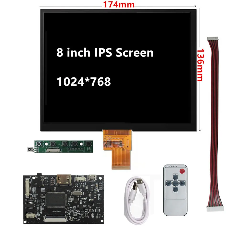 8 Inch 4:3 1024x768 IPS Screen LCD Monitor Display Kit with Audio Driver Board HDMI-Compatible with Raspberry Pi/PC laptop