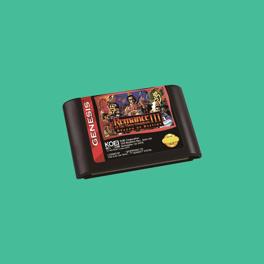 Romance of the Three Kingdoms III Dragon of Destiny USA Game for SEGA Mega Drive Genesis 16 bit Consoles Game Cartridge Box
