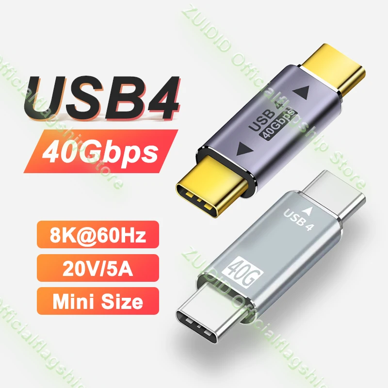 Mini USB4.0 40Gbps Thunderbolt 3 Adapter 8K@60Hz USB Type C Male to Male PD100W Charger Data Converter for Macbook Pro Air Dell