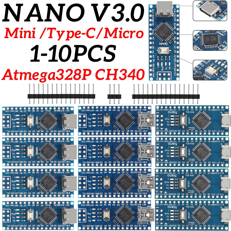 Mini / Type-C / Micro USB Nano 3.0 with The Bootloader Compatible Nano Controller for Arduino CH340 USB Driver 16Mhz ATMEGA328P  Read more