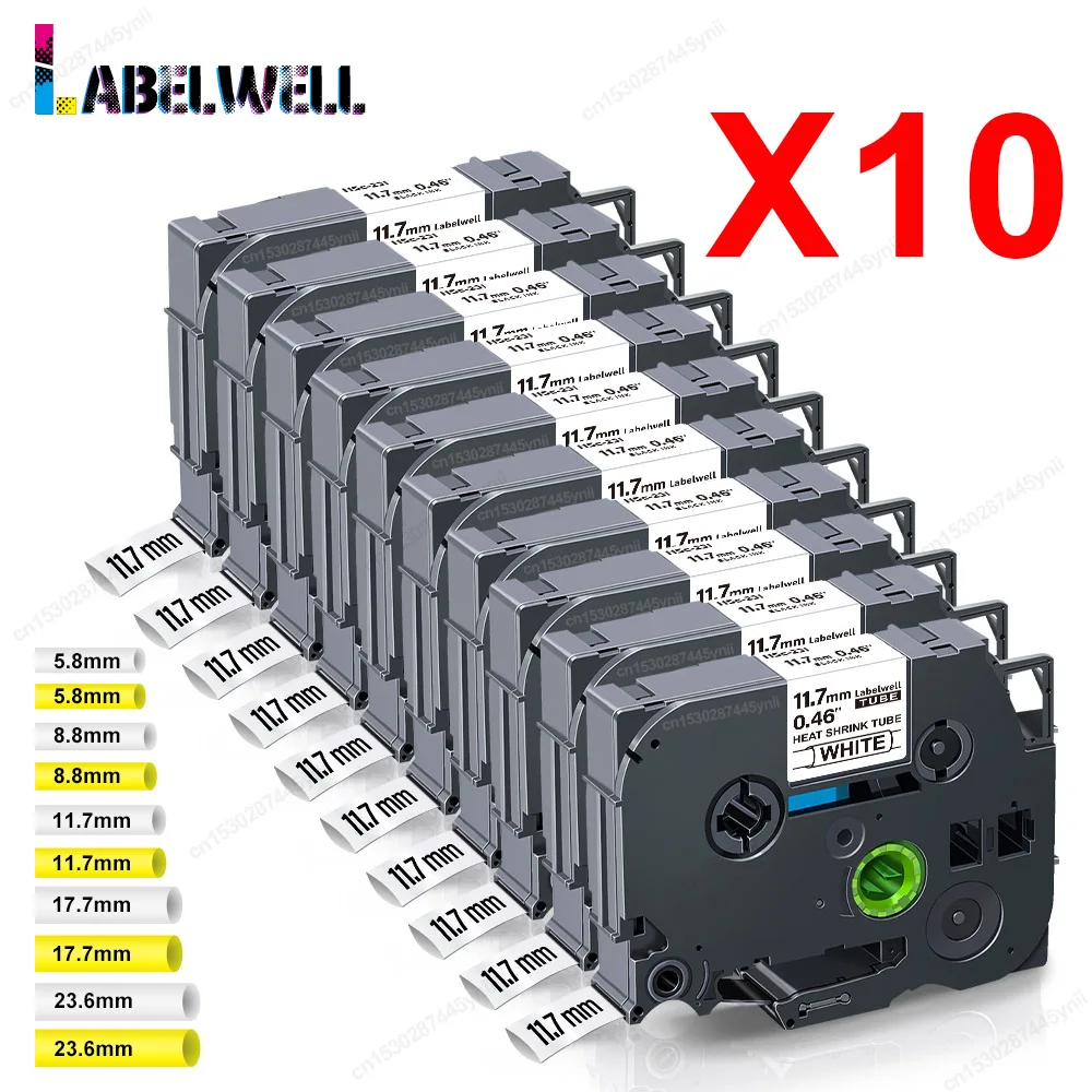 Labelwell 5/10PK Hse-231 Compatible for Brother Hse-211 221 241 251 611 621 631 Heat Shrink Tube for Brother P-Touch Label Maker