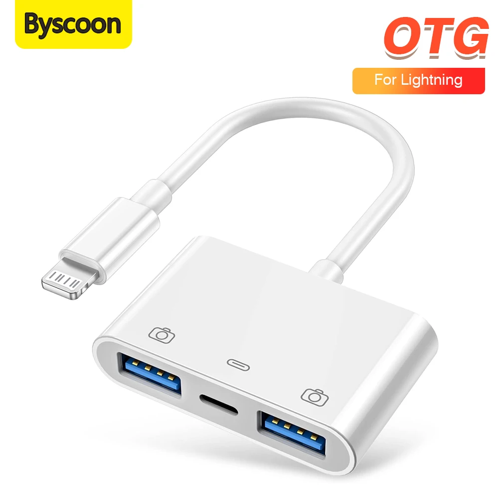 Lightning to Lightning Dual USB 3 in 1 Charging Transfer Adapter for iPhone 14 13 12 Pro iPad Camera Photo Data USB3.0 Converter