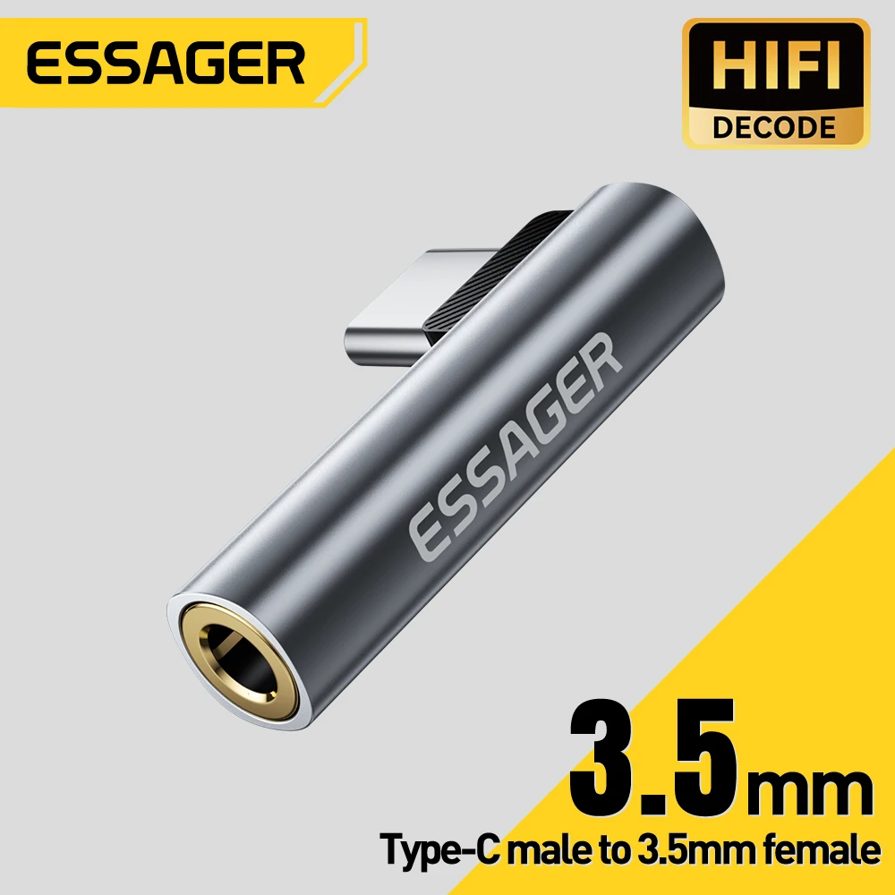 Essager Audio Adapter Type-C to 3.5mm for iPhone 16 15 Huawei Lightning to 3.5mm Elbow Audio Converter for Tablet Laptop iPhone  Read more