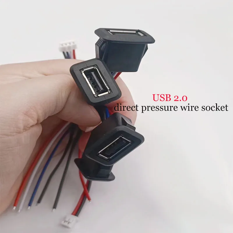 USB 2.0 female charging socket connector with soldering wire 2/4 charging USB data cable socket for mobile phone charging