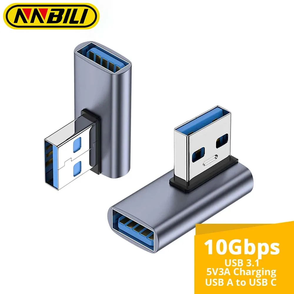 NNBILI 90 Degree USB 3.1 Adapter 1-2 Pack Left Angle USB A Male to Female Converter Extender for PC Laptop USBA Charger and More