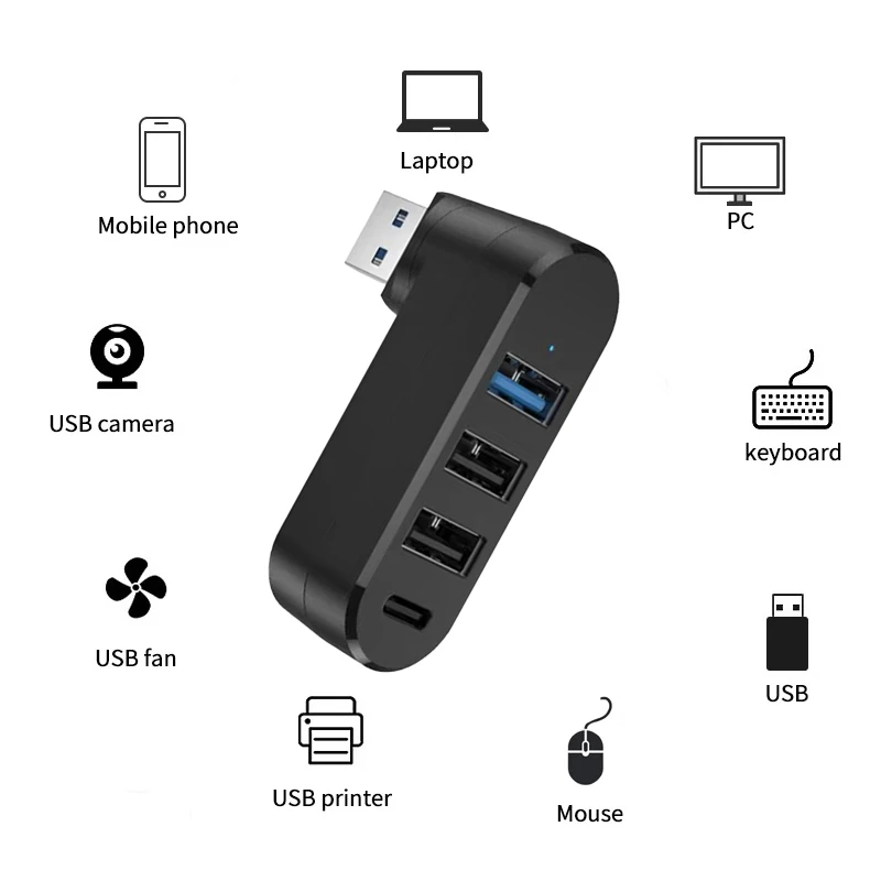 Mini Rotatable 4 Ports USB 3.0 2.0 Hub Type C High Speed Data Transfer U Disk Splitter Adapter For Laptops MacBook PC Computer