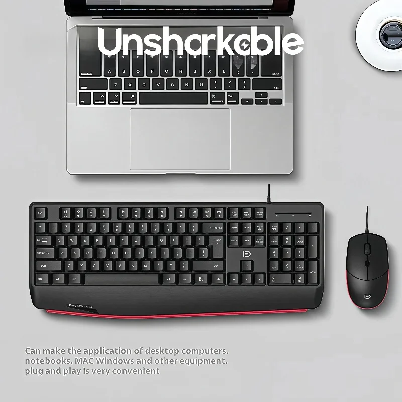 UNSHARKABLE 8500P Ergonomic Wired Keyboard Combo Media Shortcuts Compact Design For Home Office Studio PC Mac Systems Laptop