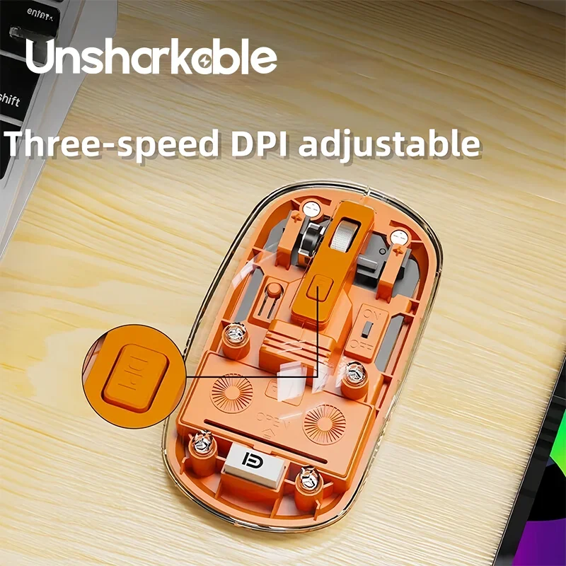 UNSHARKABLE E618D Dual-Mode Wireless Mouse Bluetooth 2.4G Translucent Shell Multi-Device For PC Mac iPad Laptop Gaming Office