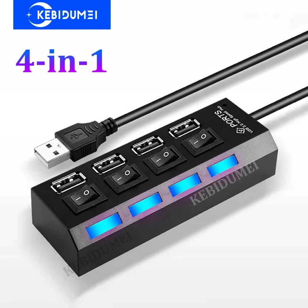 4-IN-1 USB HUB USB Splitter USB 2.0 Adapter Multi HUB USB2.0 Extension HUB with On/Off Switch For Computer Laptop PC Accessories  Read more