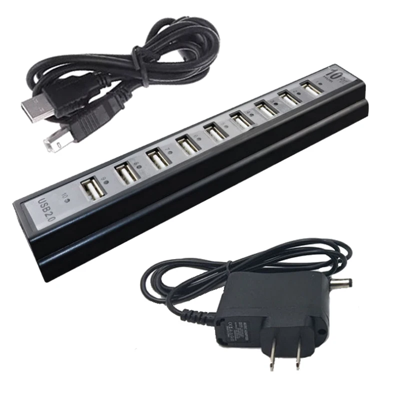 USB HUB 10 Port Keyboard U-disk Mouse USB 2.0 Plastic Splitter Hub Cellphone Charging Cable Adaptor Charger