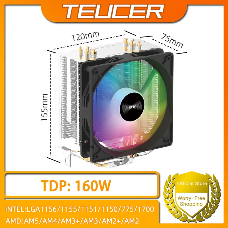 TEUCER CPU Cooler 4 Heat Pipes PC Radiator Cooling 3PIN PWM Silent Rgb Fan For Intel 1700 1150 1155 1156 1366 AM2/AM3/AM4 AMD  Read more
