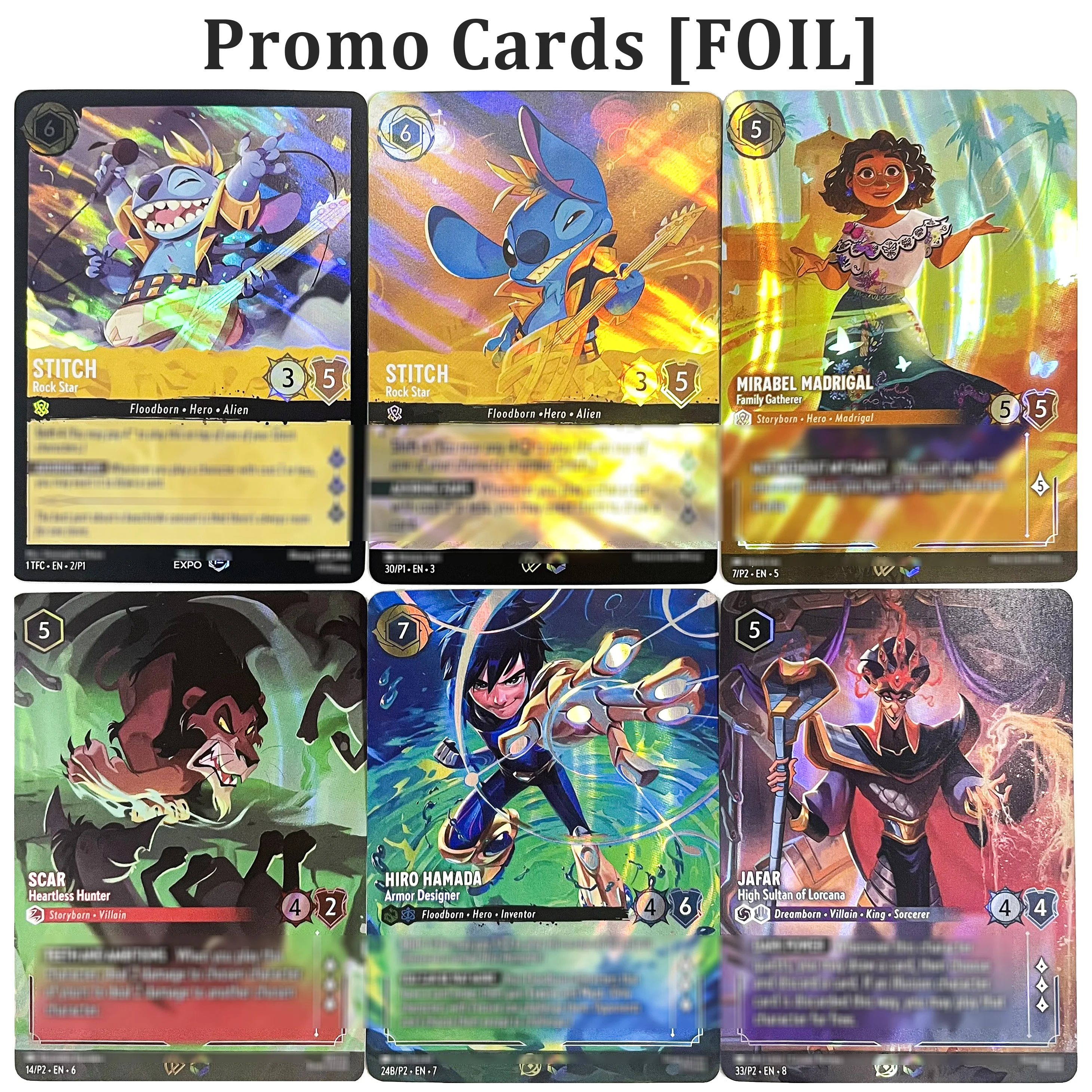 PROXY 5/6 PCS Lorcana Promo Foil Cards STITCH HIRO HAMADA SCAR MADRIGAL JAFAR TCG LORCANA Collectible Trading Game