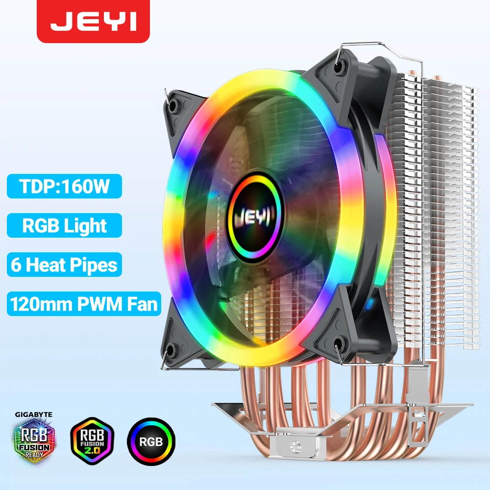 JEYI RGB CPU Cooler 4/6 Heat Pipes Air Tower Radiator PC 12cm PWM Fan for Intel 1700 1200 1150 1155 1156 1366 2011 AM5 AM4 AM3  Read more