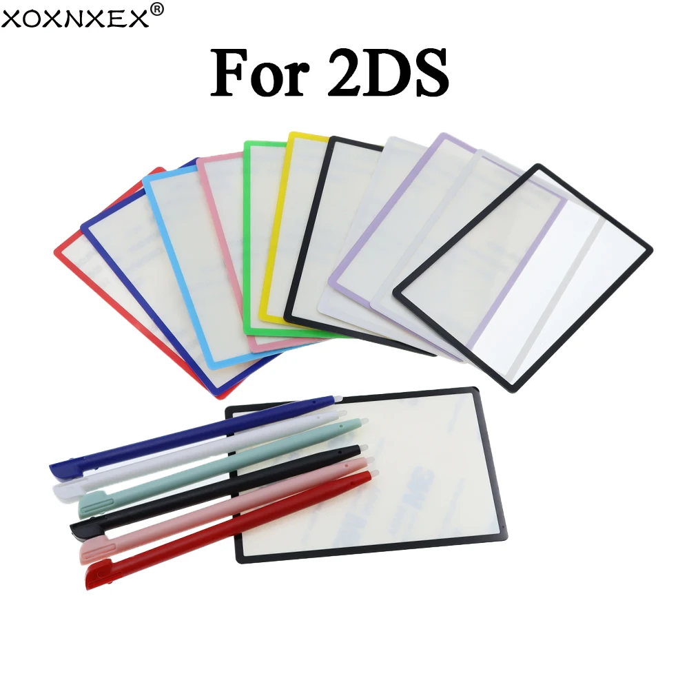 XOXNXEX 1Set Top Upper LCD Screen Lens Plastic/Glass Cover & Touch Stylus Pen For Nintend 2DS Repair Part