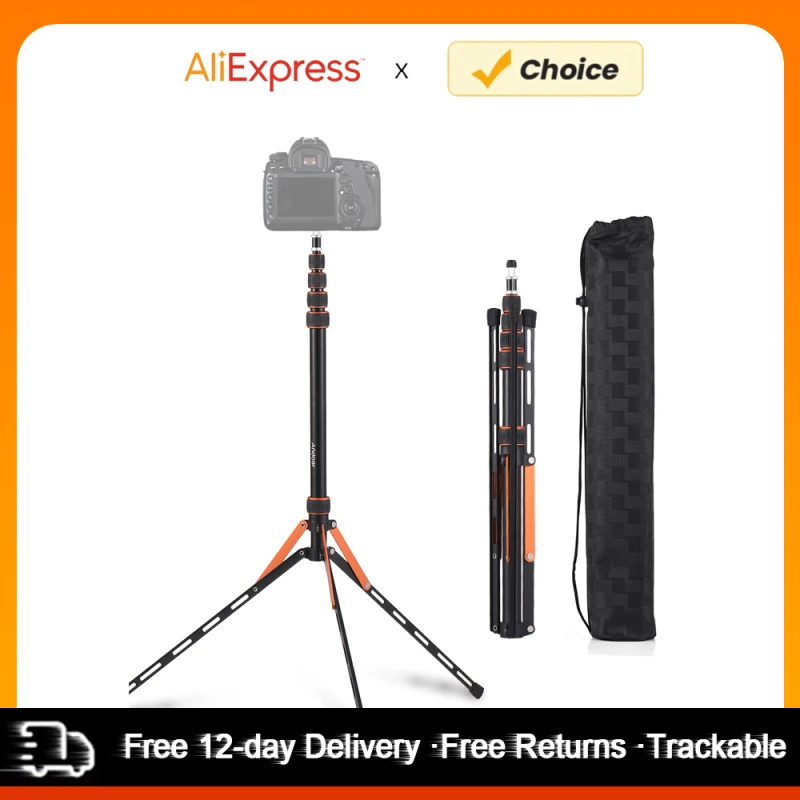 Andoer SL25-5 85.03” Foldable Tripod Stand Aluminum Alloy 5 Sections Adjustable 5kg/11.02lbs Load Capacity w/ 1/4in 3/8in Screw