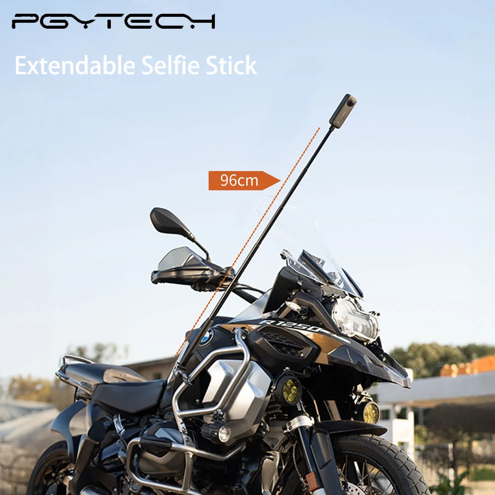 PGYTECH 96cm Extendable Selfie Stick Motorcycle Mounts Standard 1/4 Interface Aluminum Alloy For Insta360 Action Cameras