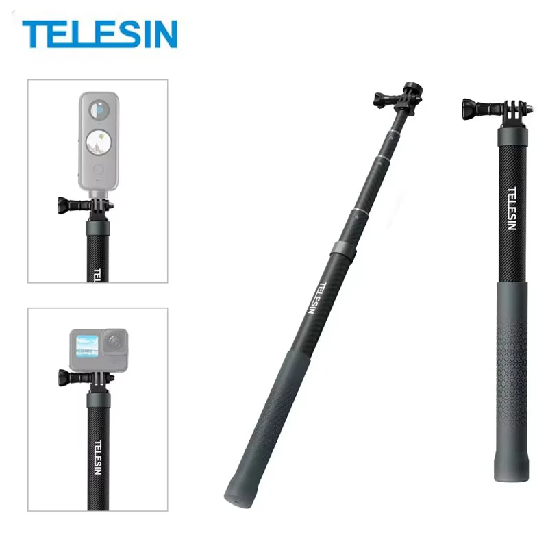 TELESIN GP-MNP-002 Selfie Stick Carbon Fiber Camera Stand Bracket 12.6-47.2in for GoPro Hero 12/11/10, Insta360 X3/X2/One