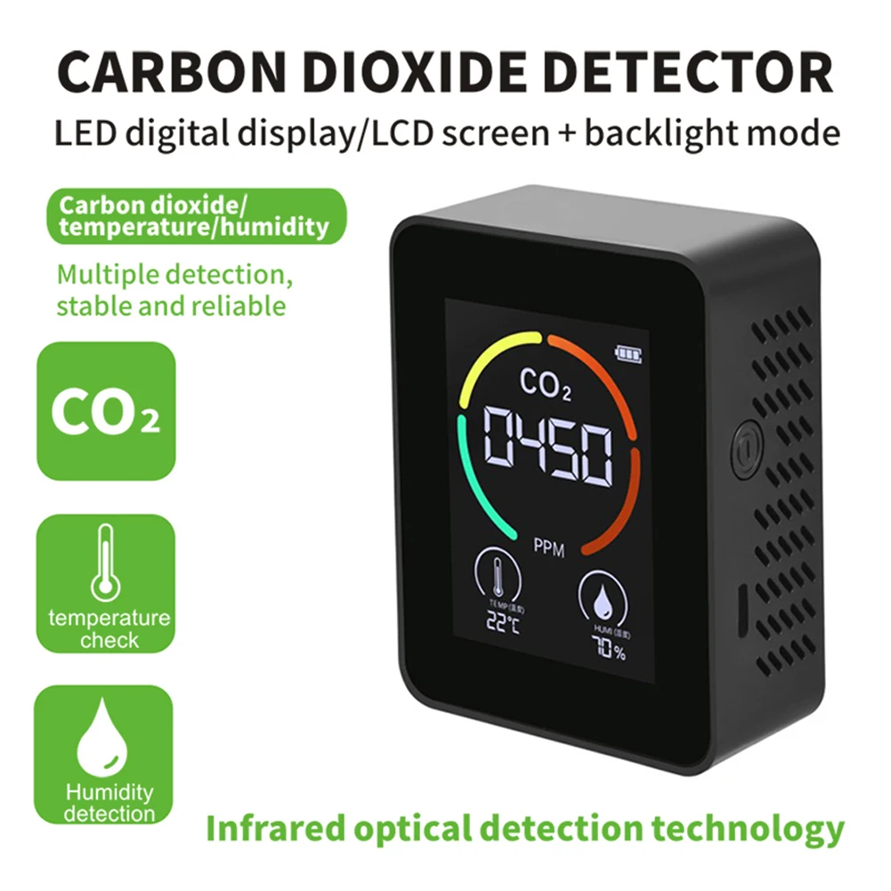 Carbon Dioxide Detector CO2 Infrared Detector Portable Automatic Temperature and Humidity Air Quality Sensor Safety Protection