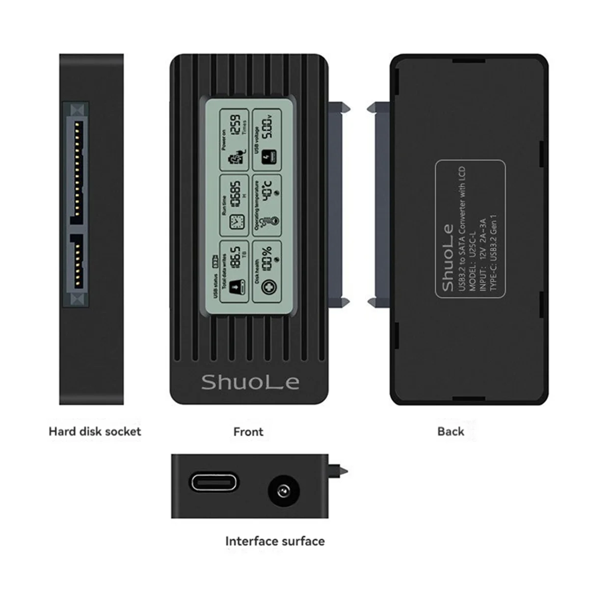 AA38M ShuoLe USB 3.1 Hard Drive Case 2.5/3.5-Inch Hard Drive Adapter Intelligent Digital Display Easy Drive Cable