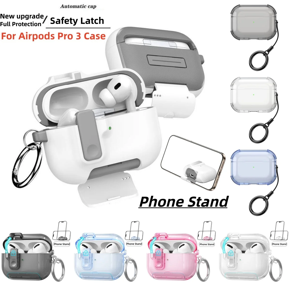 New 2025 For AirPods Pro 3 Case Lock Shockproof Apple AirPods Pro 3rd Generation Case Protective Case with Cleaning Kit&Keychain
