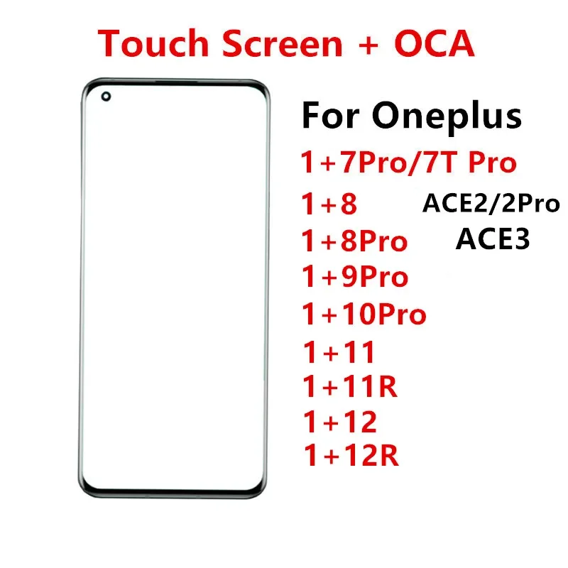 Touch Screen For Oneplus 12 11R 11 10 9 8 Pro 7 7T 8Pro ACE 3 2 Front Panel LCD Display Out Glass Cover Lens Repair Parts + OCA